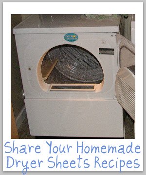 In addition, if you have tried to make your own dryer sheets and the recipe you used didn't work as well as you would like it, you can also tell us about that, so we can steer clear of these recipes.